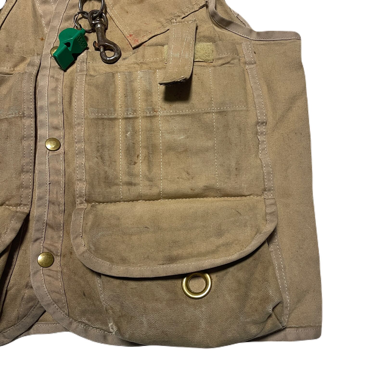 フロントには銃弾やツールを入れていたであろうポケットが、バックには捕らえた獲物を入れていたであろうポケットが配置されています。