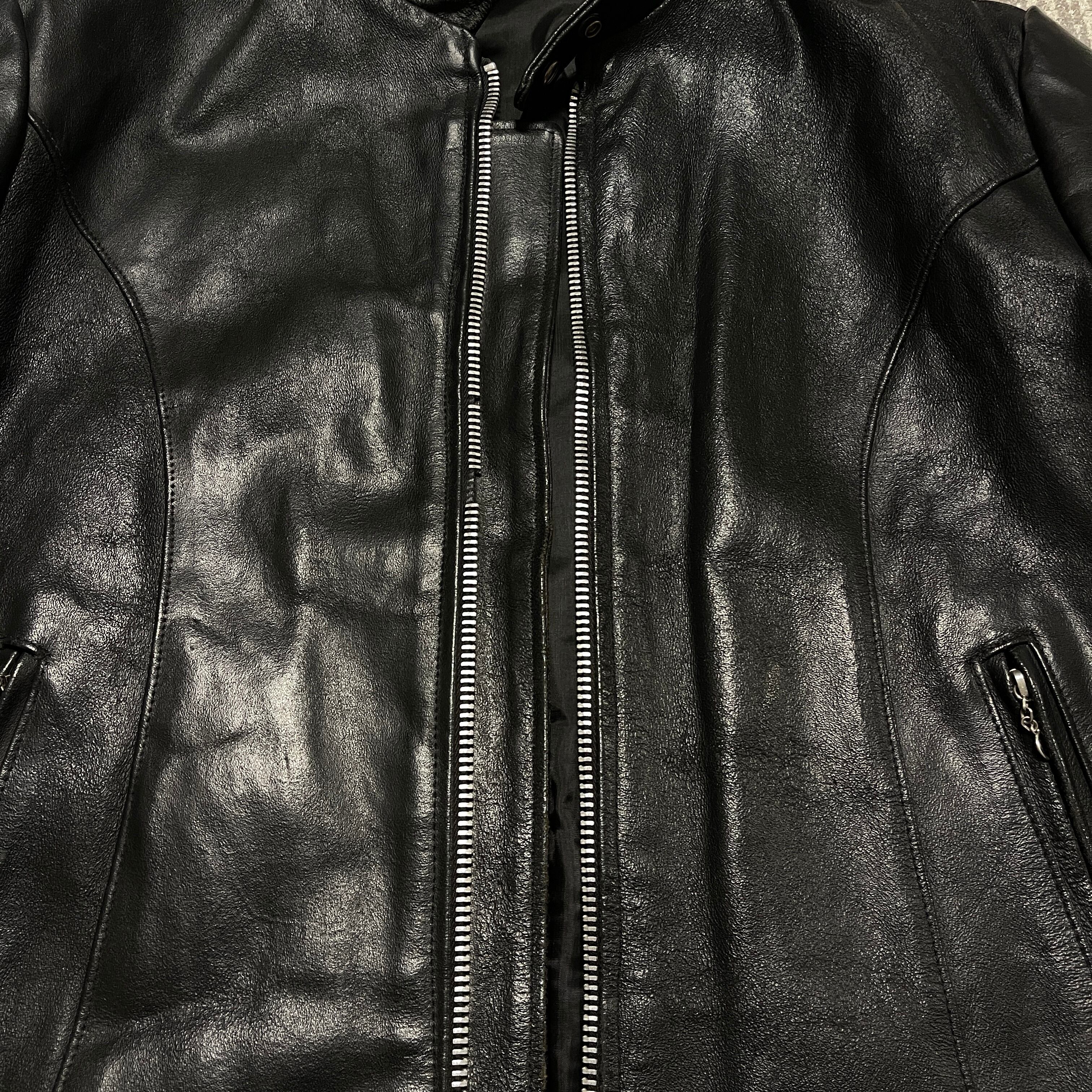 ダブルライダースと違って、シングルライダースはこてこて感が少なく、着用した際にスッキリして見えるので抵抗ある方でも着用しやすいかと思います。