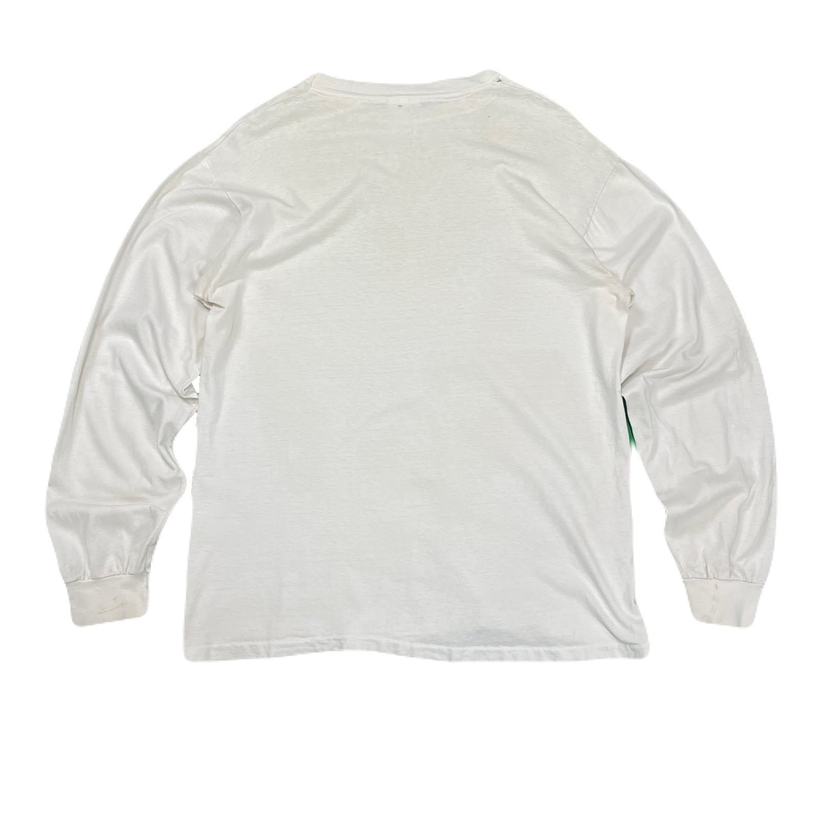 コンディションとしては、右後ろ肩に小さなダメージ、首リブや袖口に擦れ・ほつれが見られますが、むしろその“やれ感”がヴィンテージならではの雰囲気を高めています。デザインと経年の風合いがマッチし、単なるロングスリーブTee以上の存在感を放つアイテムとなってます。