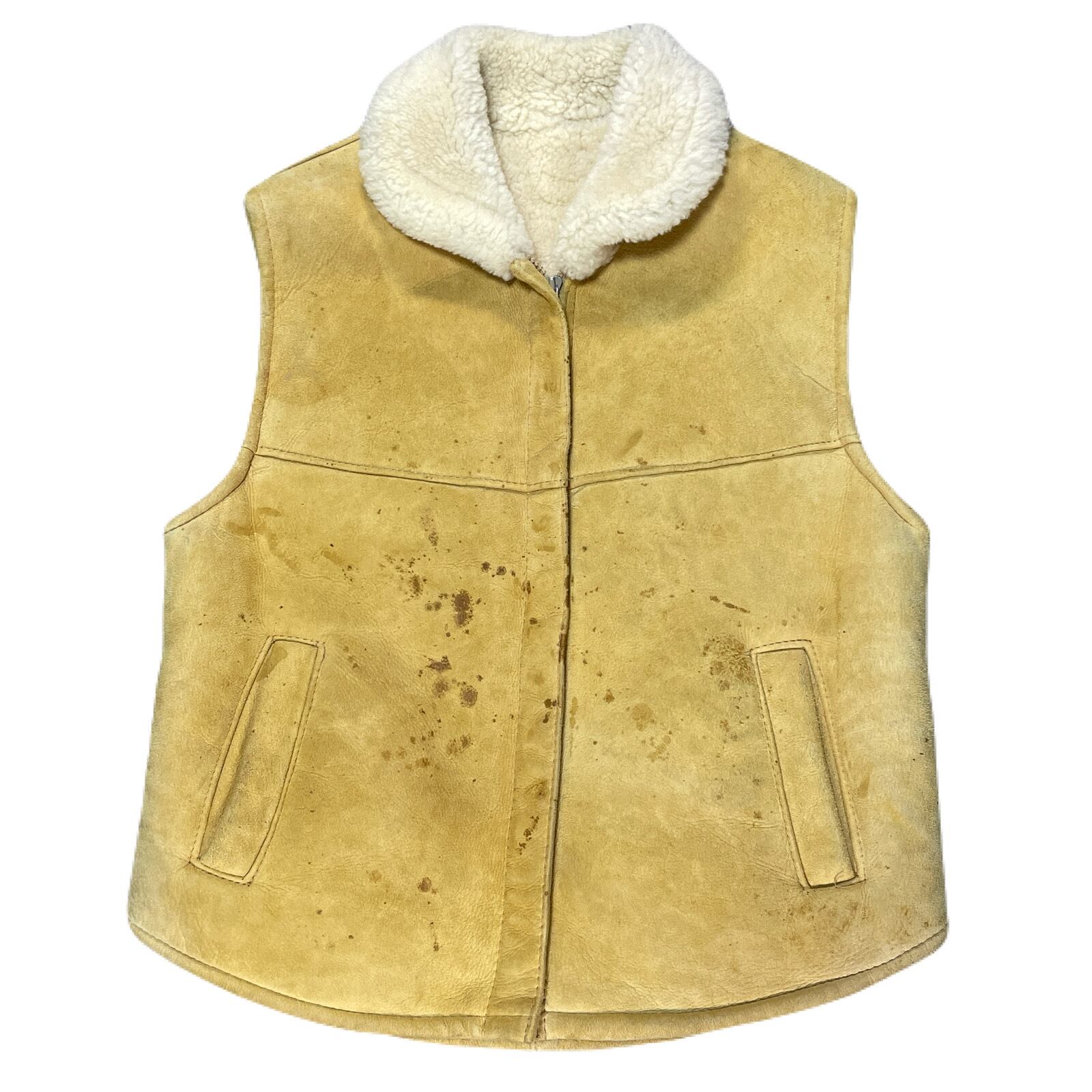 ハンティングジャケットなどのアウターでよく見かけますが、ベストはあまり見かけません。それに加え、裏地がボアで羊革のベストは珍しいです!