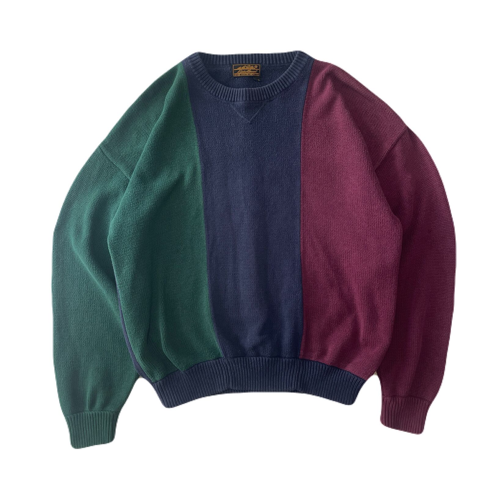 このようなセーターは首のリブなダルダルになっている古着が多いですが、こちらはしっかり締まっているのでオーバーサイズに着てもかっちりしまって見えます!